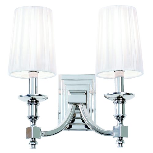 This Domina twin wall light is finished in a nickel effect plate with white pleated shades; suitable for use with LED lamps and dimmable. Single wall light also available