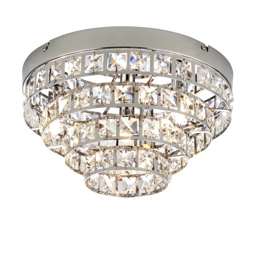 4 light semi flush ceiling fitting, finished in polished chrome with glass faceted beads. Dimmable, suitable for use with LED lamps and ideal for fitting to low ceilings