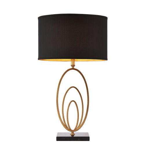 The Vilana table lamp combines an antique gold leaf finish with black marble base and simple black shade with gold fabric inner. This fitting is supplied with an inline switch and is suitable for use with LED lamps