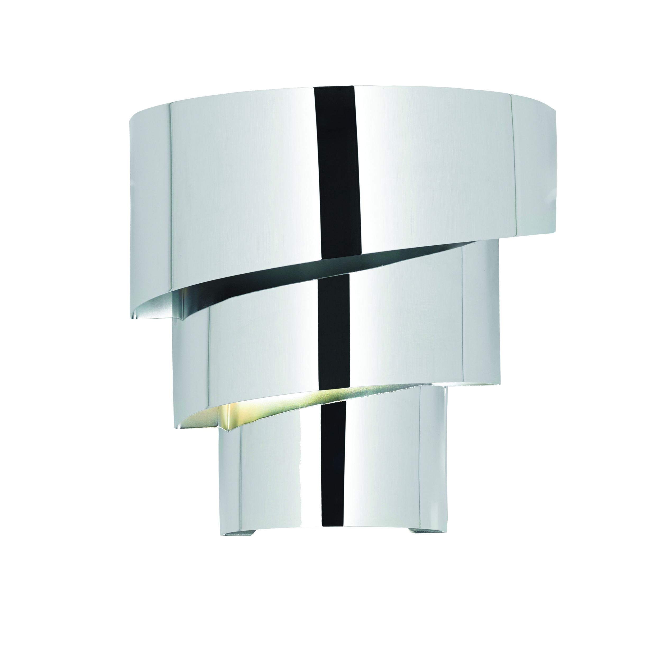 Indoor wall light finished in chrome effect plate. This fitting features a 3 tier, layered curve design and is dimmable and suitable for use with LED lamps