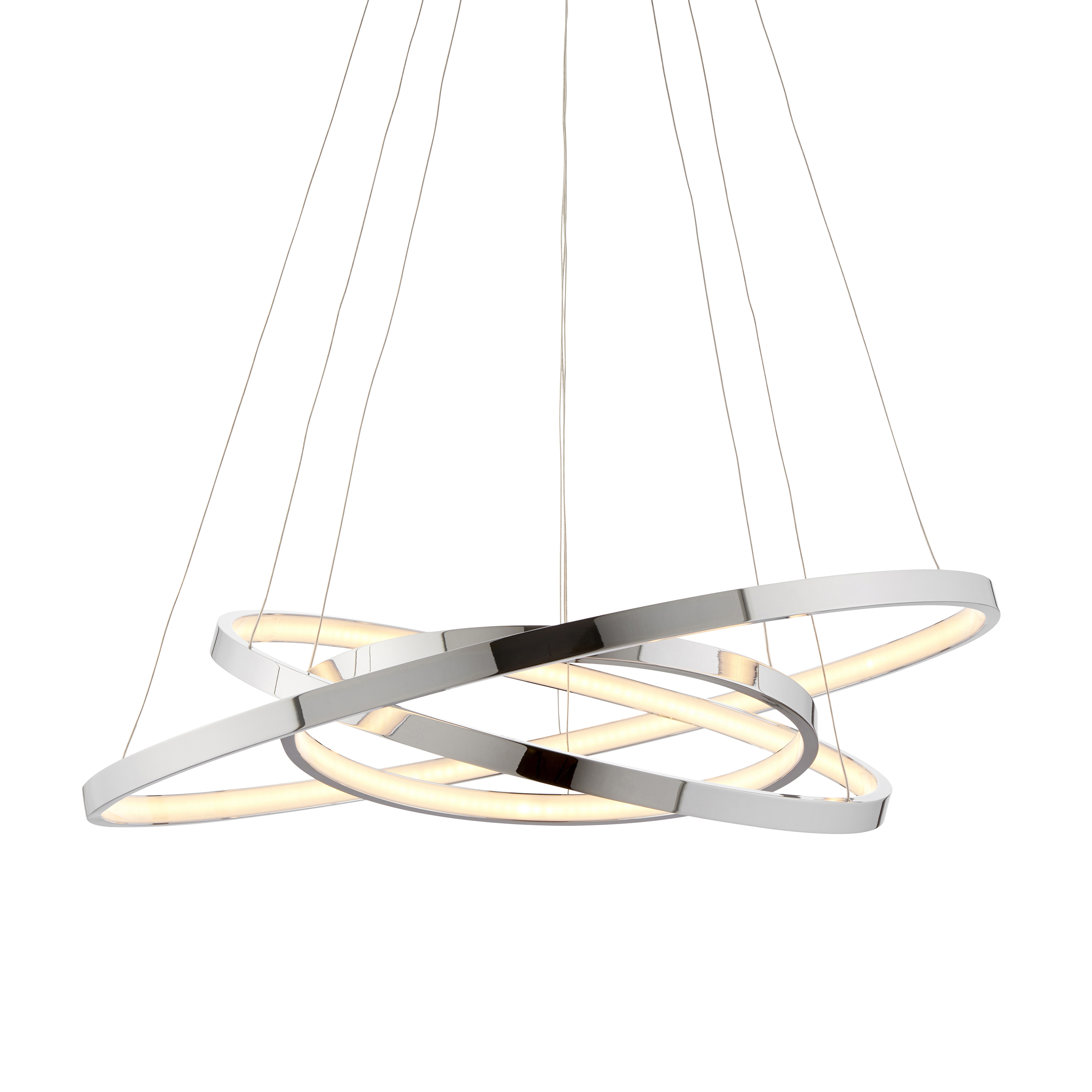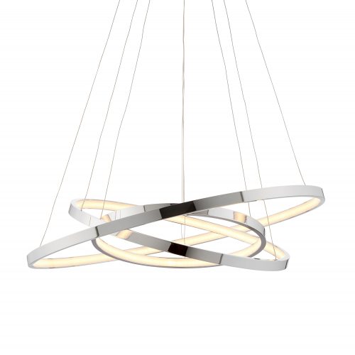 An impressive polished chrome finish 3 hoop LED pendant suspended from adjustable wire. Low maintenance costs and energy efficient. Also available in a smaller 2 circle version