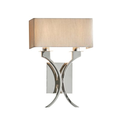 The Vienna wall light combines simplicity with elegance. Finished in polished nickel with sweeping curved stems and topped with a beige organza effect shade. Matching items available.