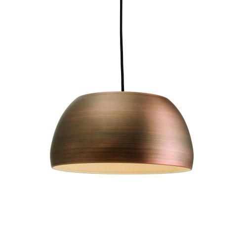 A metal ceiling pendant with an attractive matt bronze finish. Suspended by a black cord with an adjustable drop of up to 1725mm. suitable for use with LED lamps and dimmable. Other colour options available