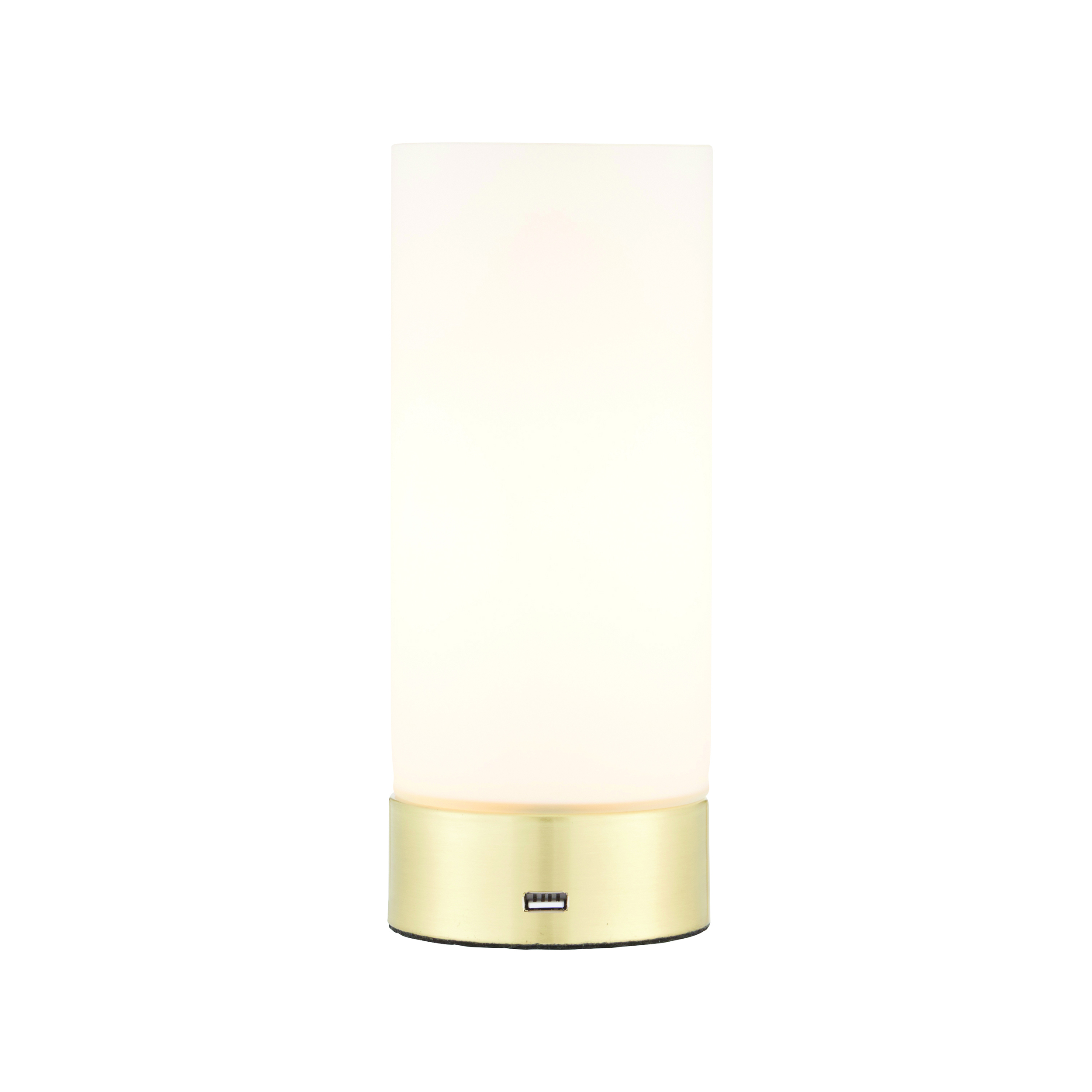 A sleek dual purpose table light finished in a brushed brass effect plate, with a matt opal glass shade. This light is operated by clever 3 stage touch technology, plus has the addition of a discreet USB port meaning it can charge your devices too.