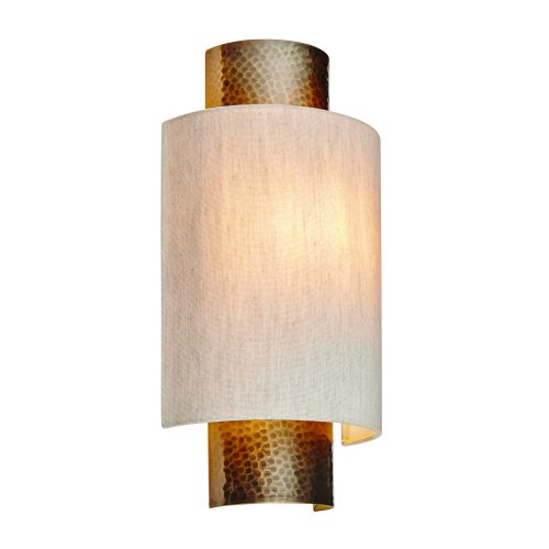 The Indara wall light features a hammered aged bronze effect fitting, with a natural linen effect fabric. A stylish fitting which would suit a variety of styles and settings. It is dimmable and compatible with LED lamps. Matching items available.