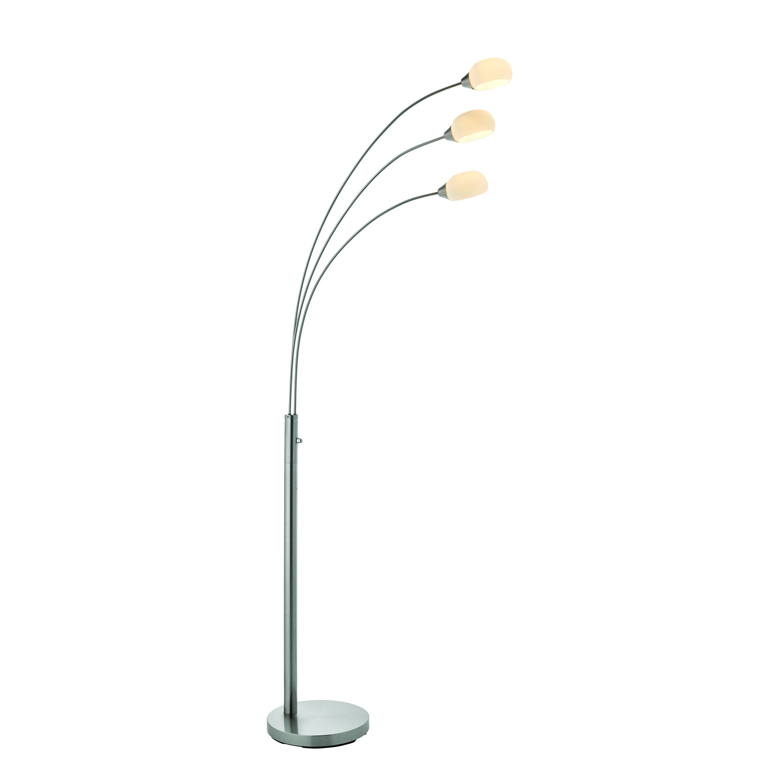 Amazing multi arm integrated LED floor lamp finished in a sophisticated satin nickel finish with white glass shades. An up to date version of an iconic classic style. Featuring a rotary dimmer on /off switch, located centrally for easy light control.