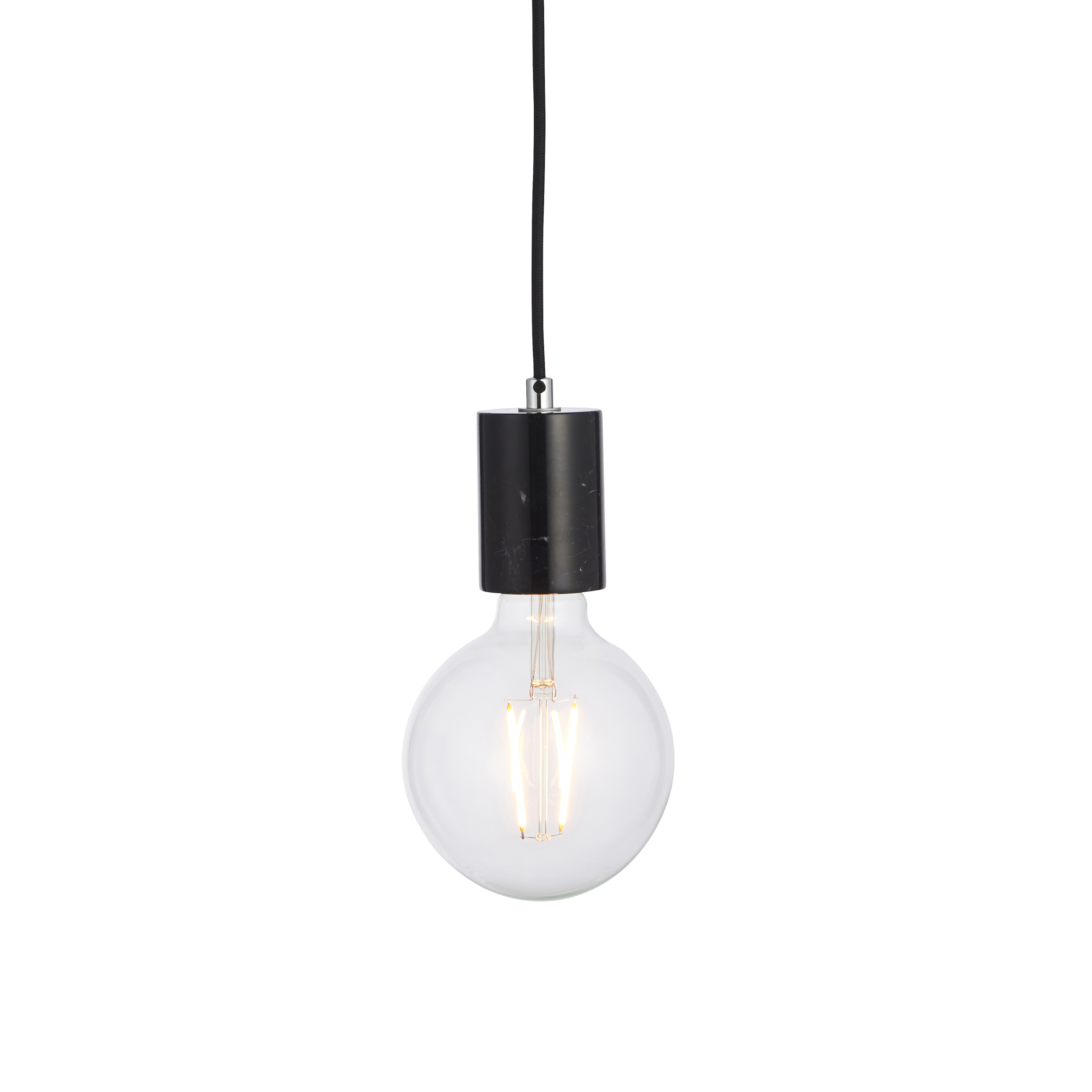 Create an ‘on-trend’ look with the Otto single pendant flex set. Black polished marble is beautifully suspended from height adjustable black fabric flex and black painted ceiling cover, select the perfect filament LED lamp from our vintage collection for a smart Scandinavian look.