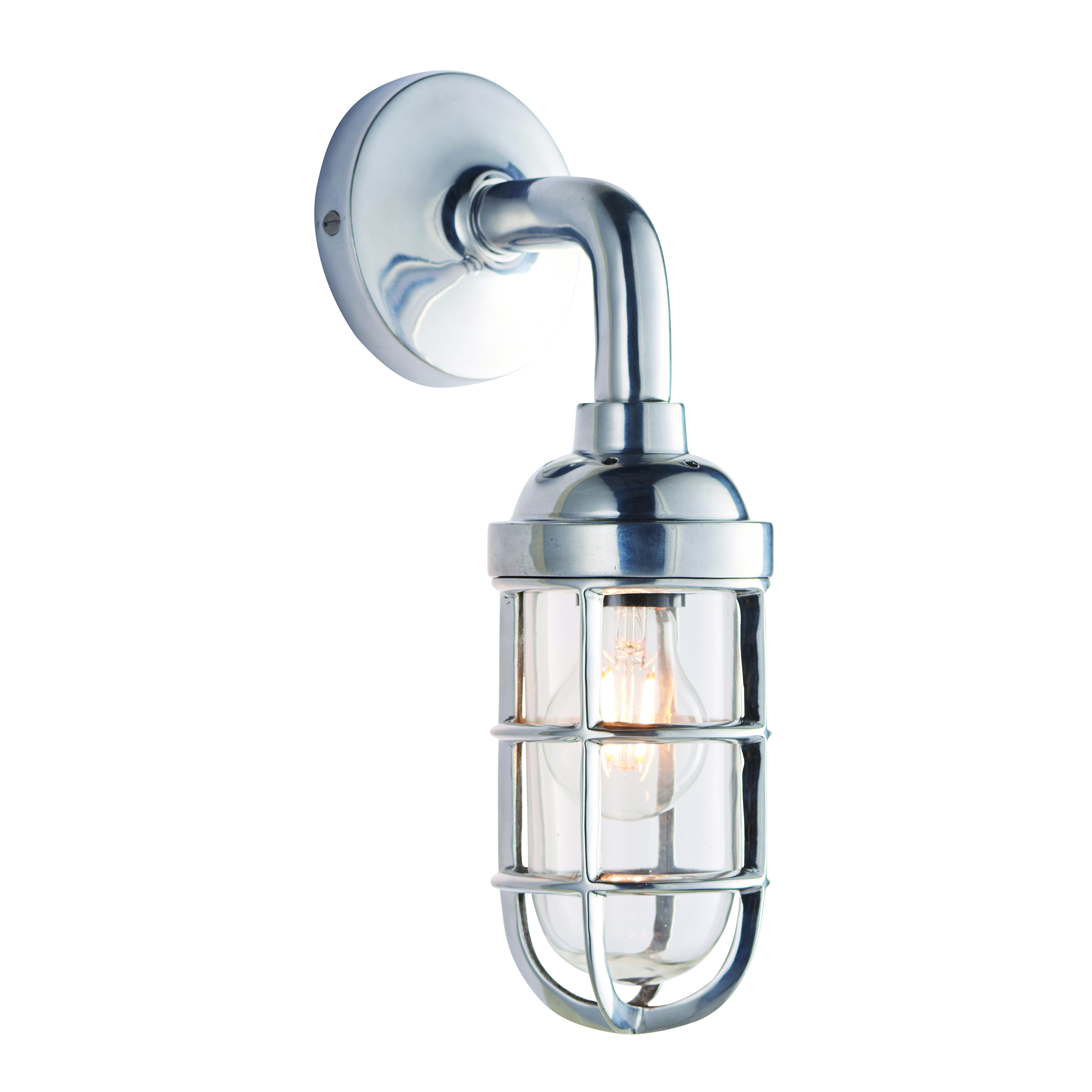 Heavy cast industrial wall light, finished in a beautiful polished aluminium finish with clear glass shade. Pair with filament LED lamps for an authentic industrial style.