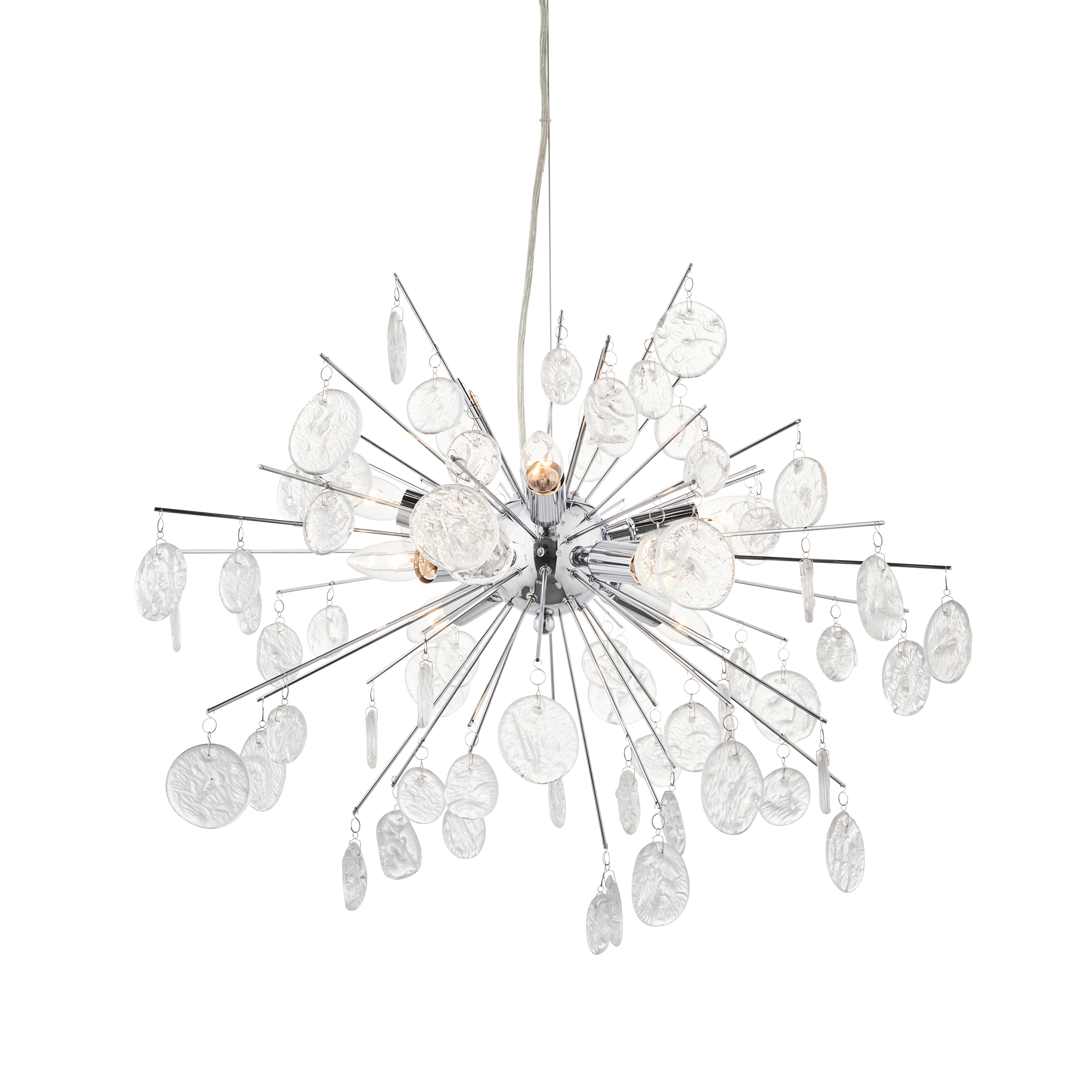 The Calla is a stunning design. Delicate chrome sphere rods are decorated with droplets of clear glass that reflect and create amazing light patterns.
