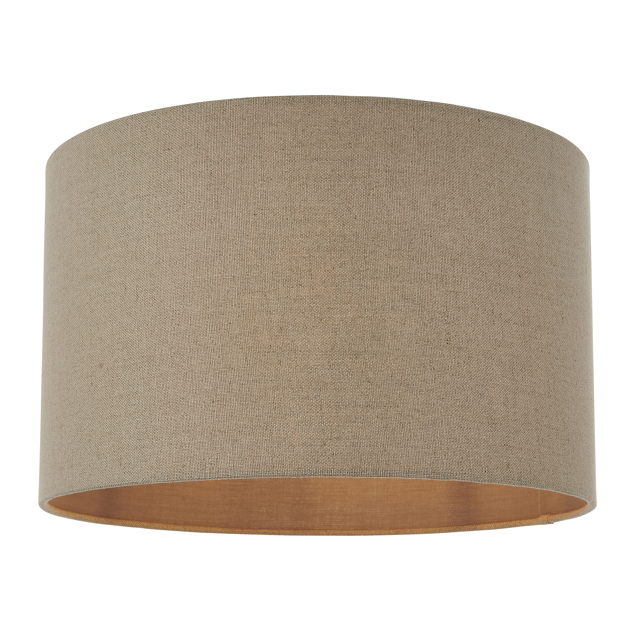 16 inch cylinder taupe linen shade. The Mae are a stunning collection of 100% linen shades and bring a contemporary designer-look to all modern interiors. Rolled edge detailing.