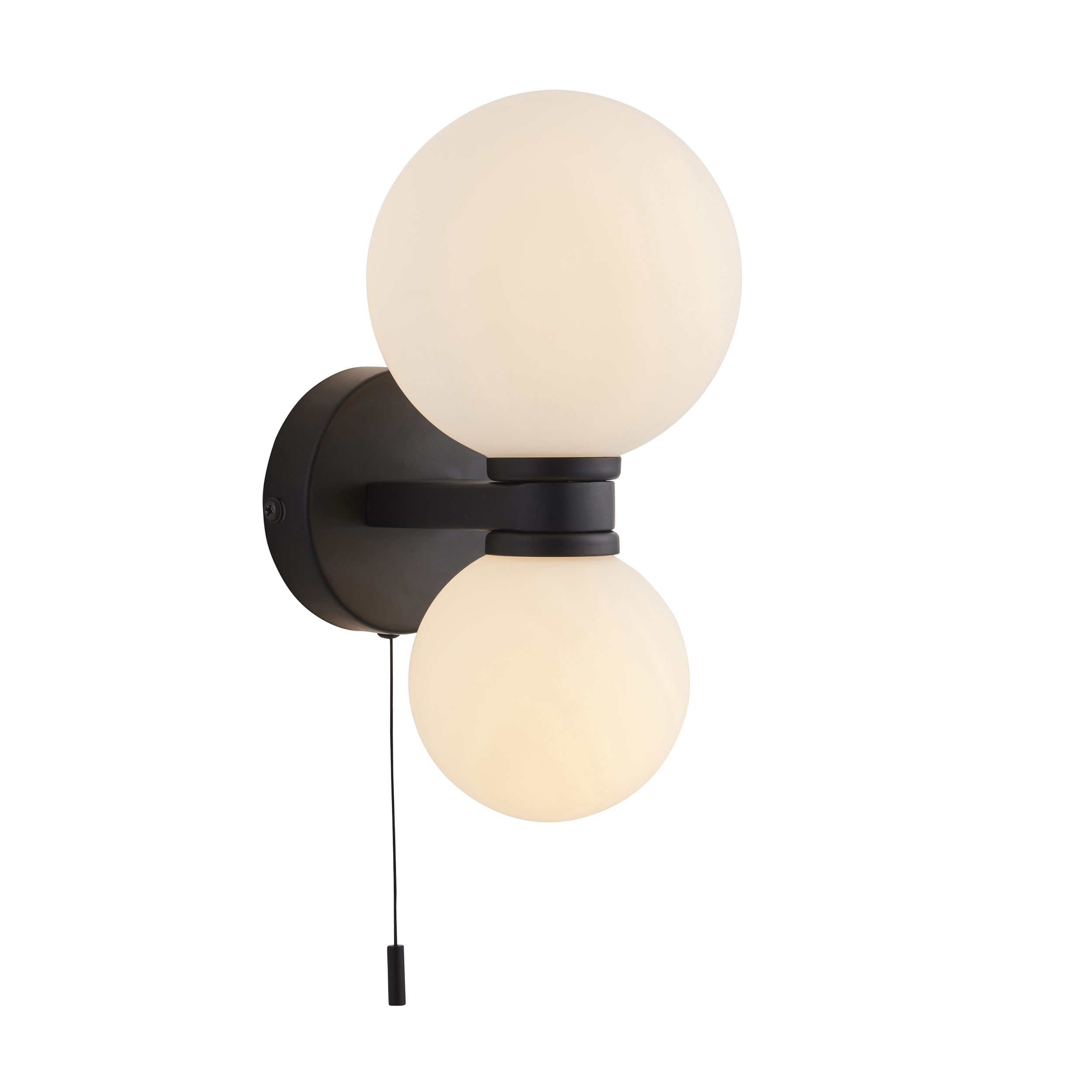 Stylish contemporary wall light combining matt black steel with matt white glass, suitable for bathrooms due to it’s IP rating. Other family items available.