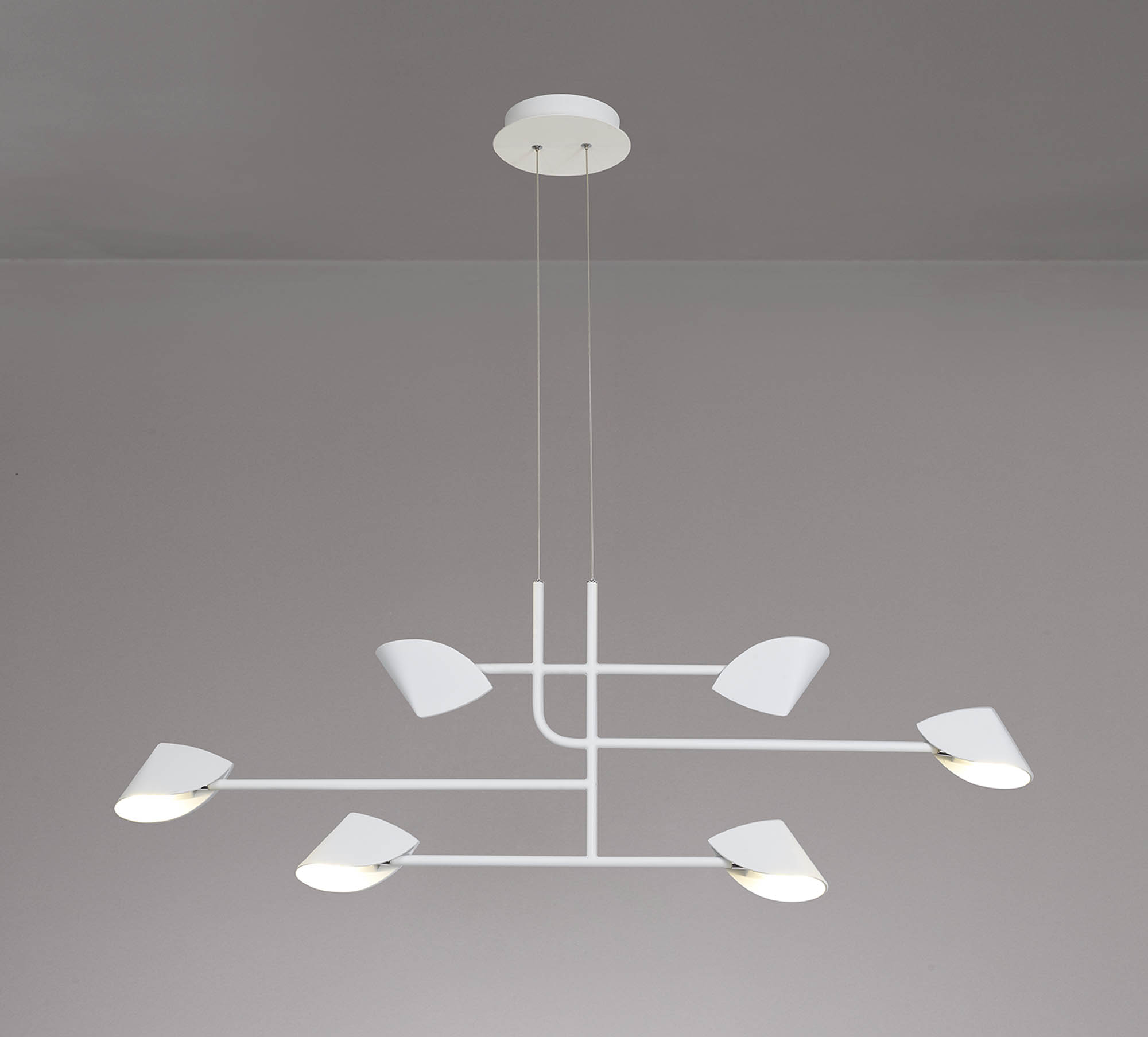Capuccina 6 Light Linear Pendant, 45W LED, 3000K, 3100lm, White, 3yrs Warranty