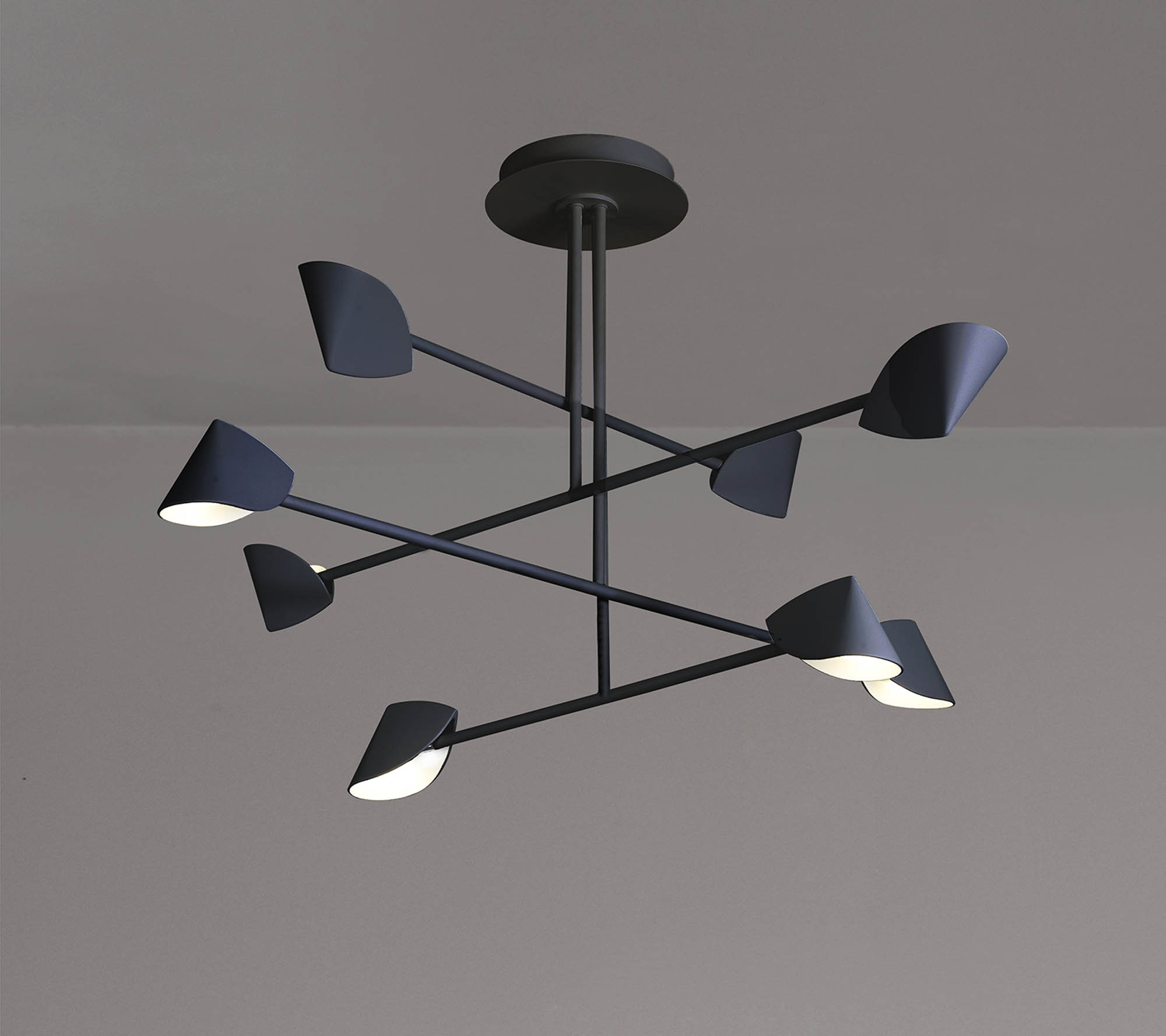Mantra’s Capuccina range sees an originally designed shade for each integral LED head. This unique feature appears as an irregular cone shape formed from folds of metal plates. The pendant and ceiling lights have tiers of adjustable bars making a scattered display of the light sources which can be adjusted as desired. A fully comprehensive collection, Capuccina also includes, wall, table and floor lamps and each item is available in either a black or white colour finish with warm white LEDs.