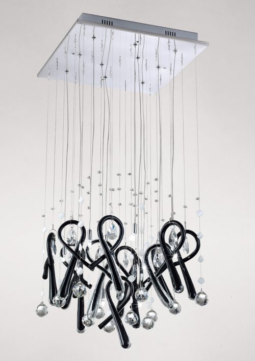 Diyas IL50403 Class Pendant Square 10 Light Polished Chrome/Black Glass/Crystal