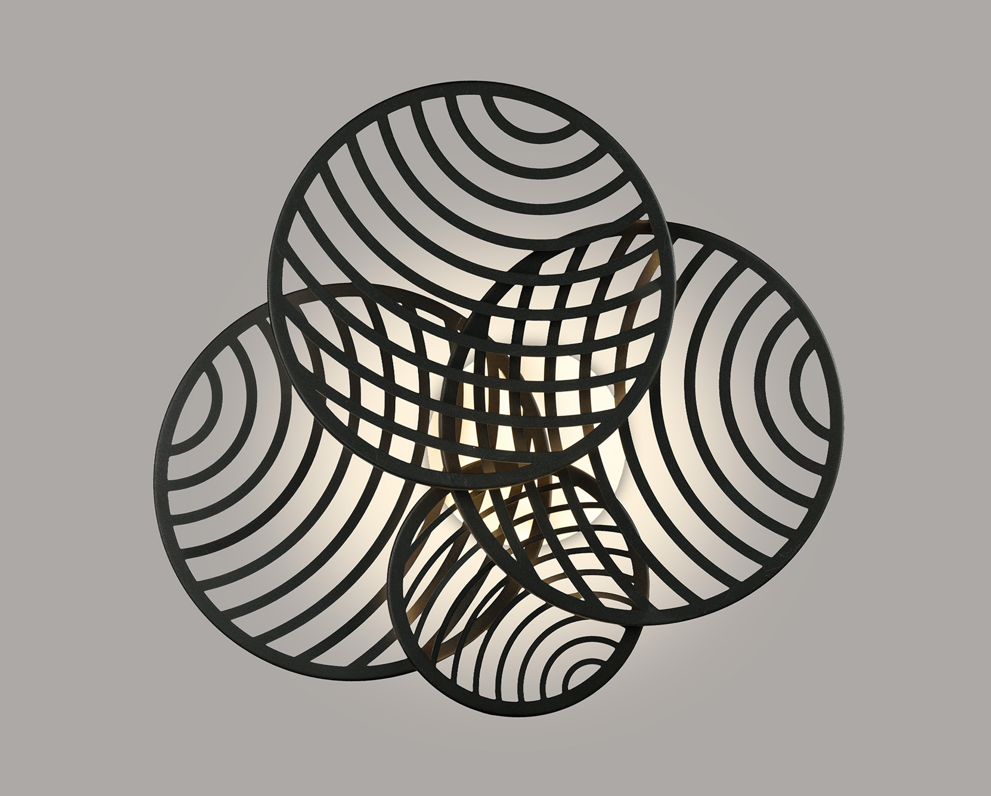 Using a combination of round shapes, the Collage range by Mantra is a modern collection with heightened optical presence. The curved grating within each shape creates a 3D spherical effect against a flush fixture. Available in either black or gold the warm white 3000K LEDs centre each fitting emitting an ambient glow.