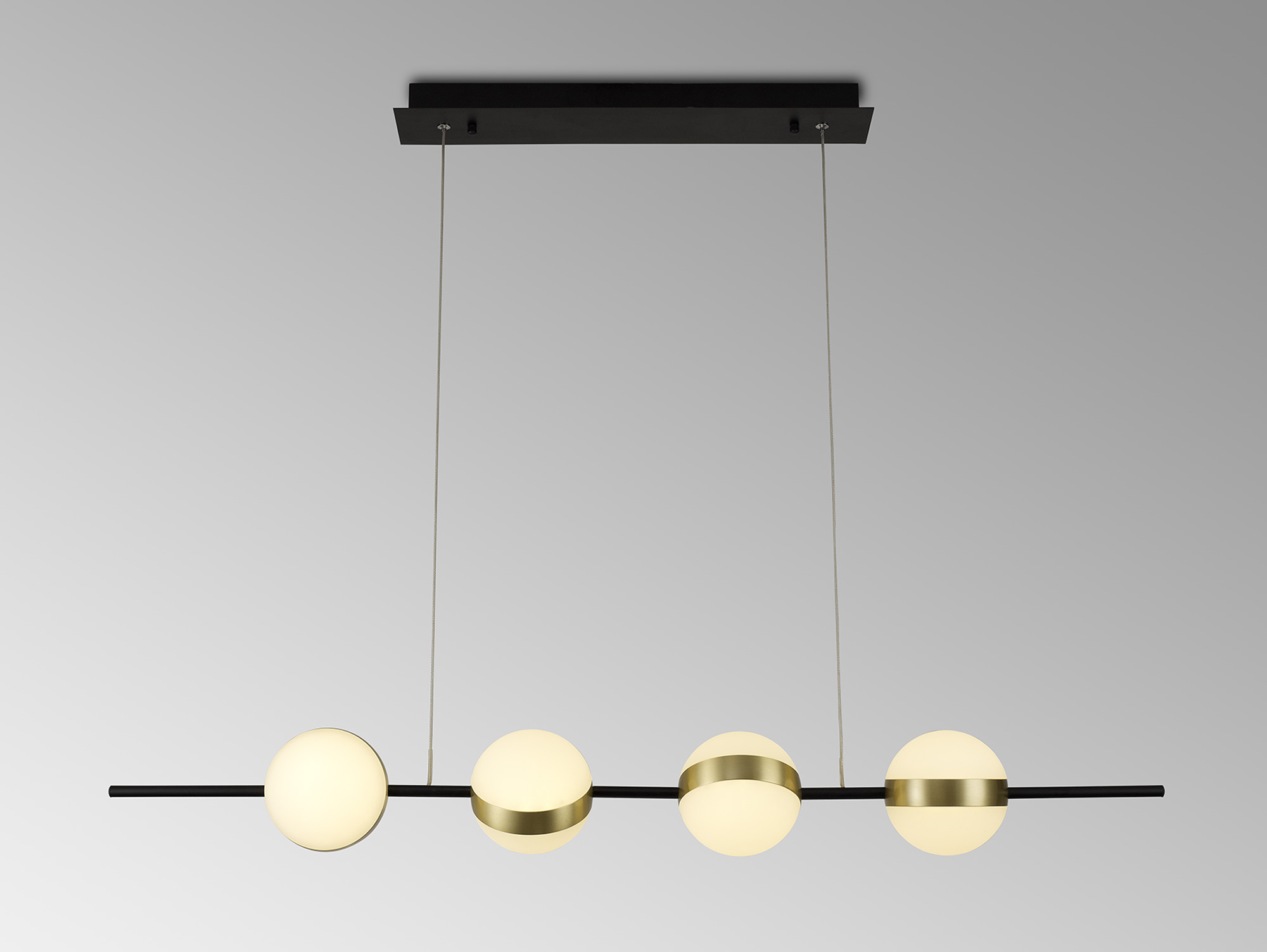 Cuba’s combination of black and gold colour finishes devise an art deco theme applied to a modern design with state of the art LED technology, providing a stylish yet energy saving lighting solution. The inventive formats of round shapes along slim frames ensure the round light sources are the most eye-catching feature of this striking collection comprised of two pendants, a semi-flush ceiling, wall and table lamp.