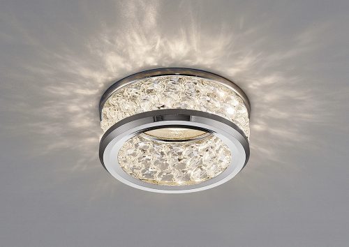 Dante is a fantastic contribution to our range of crystal downlights. Available in Chrome or Gold, the circular faschia offers a subtle sparkle on ceilings in kitchens or dining rooms. 3 tiers of crystal decorate the outer rim adding a touch of sophisticated glamour, the chrome finish giving off cool tones while the gold is warming and rich.