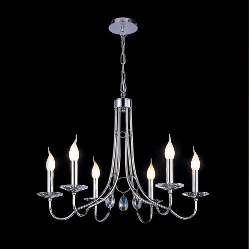 Beautiful Polished Chrome finish fittings with Lead crystal candle pans and drops. By taking a simple idea and adding a touch of elegance Danya redefines the definition of a birdcage fitting. The larger wall lamp, table and floor lamp make a statement of their own.