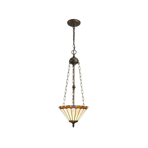 Dartford 3 Light Uplighter Pendant E27 With 30cm Tiffany Shade, Amber/Cnaples/Crystal/Aged Antique Brass
