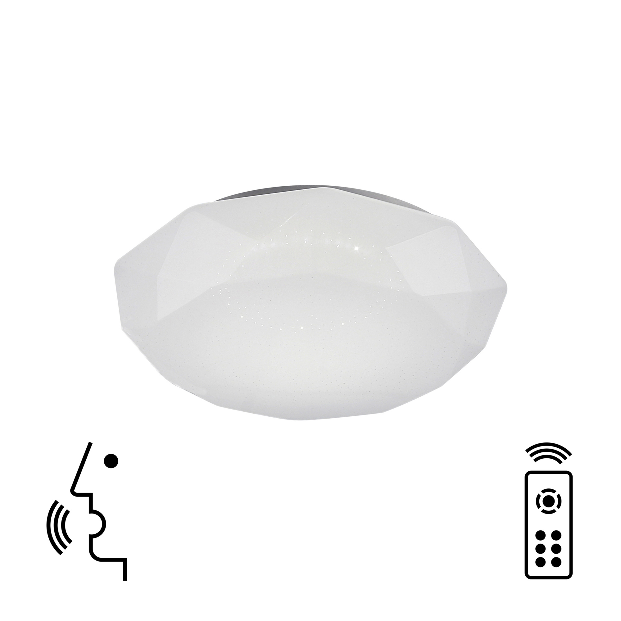 Diamante Smart takes the magical and fascinating design effect from the original Diamante range and updates the concept with improved and innovative LED technology. The ceiling lamp was designed to be a central feature in the space and illuminate with surprising efficiency. It is composed of geometric shapes that resemble a diamond cut and the light gives shimmering reflections similar to those of a diamond. All three fittings have a remote controlled tuneable function for ease of you and extended adaptability.