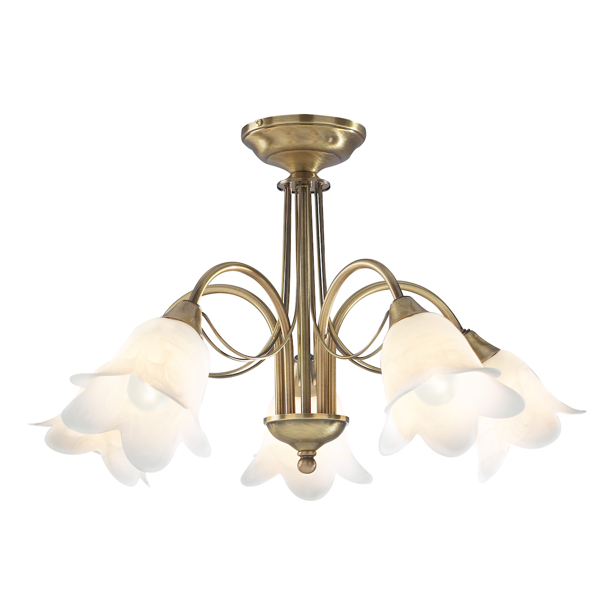 Doublet 5 Light Semi Flush Antique Brass complete with Alabaster Glass