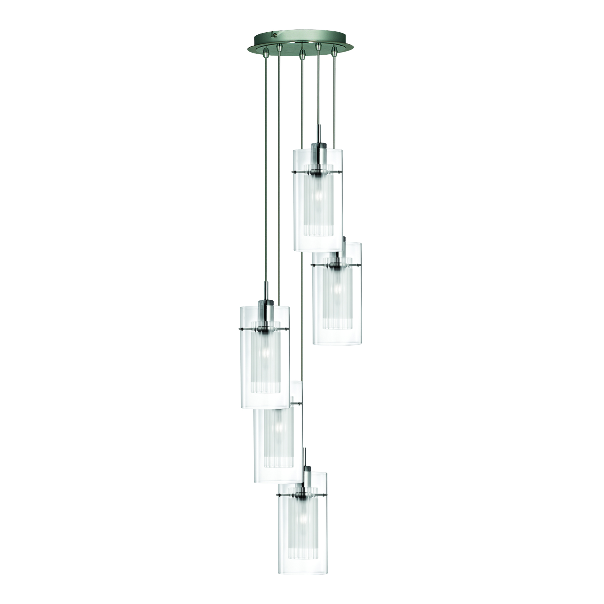 Duo I 5Lt Multi-Drop Pendant – Satin Silver Metal & Glass