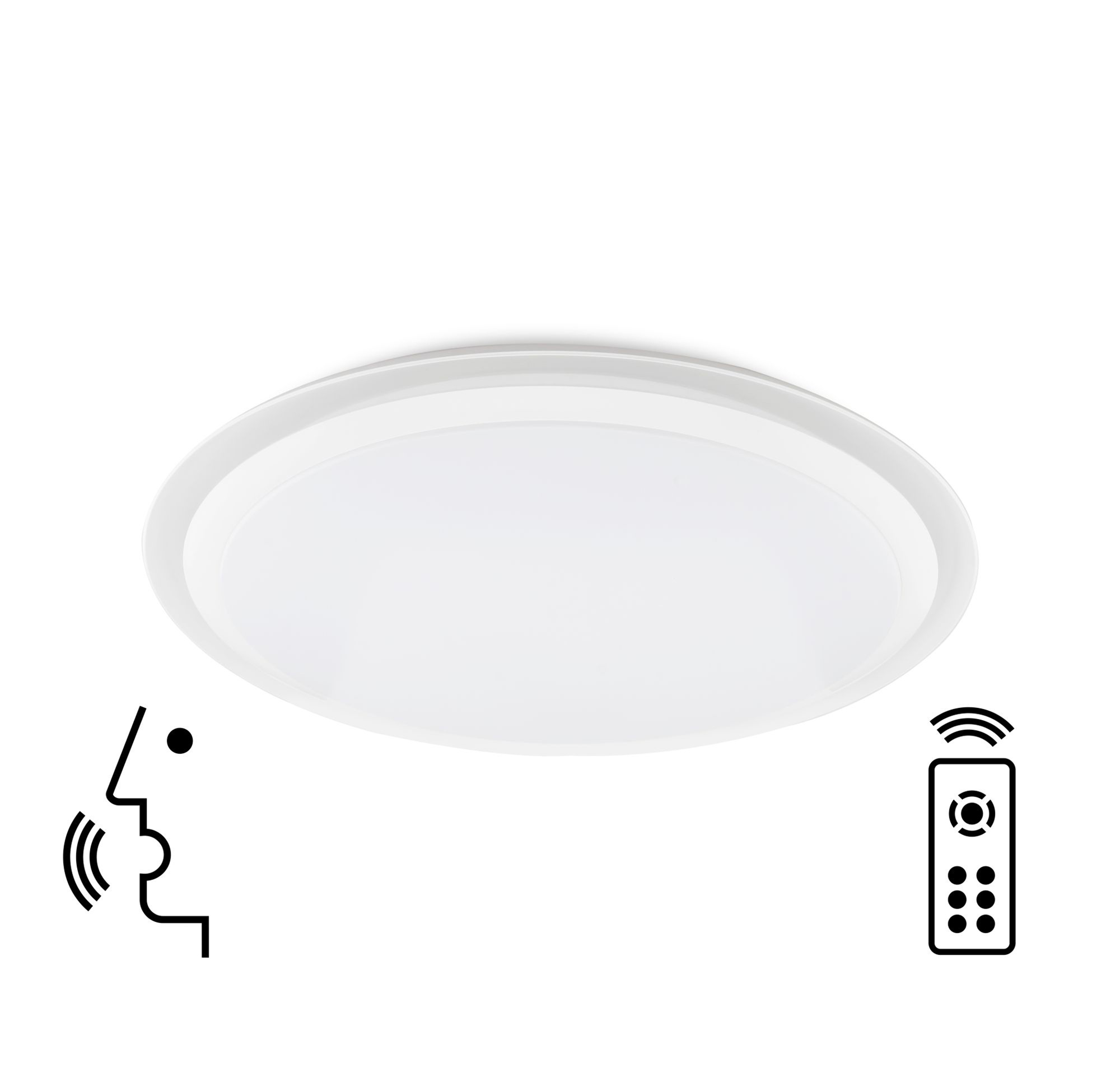 The unobstructed slim spherical diffuser, concealing the integral LEDs is bordered by a trim of white metalwork a little further away from the supporting back plate giving two displays of light source providing added depth and dimension. This flush modern fitting with a twist is available in two sizes ideal for a low ceiling room. The tuneable remote control function of the Edge Smart collection ranges from 3000-5000K.