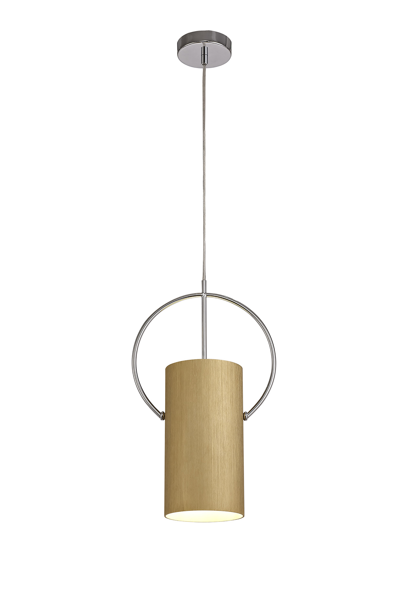 The polished chrome ring featured on the Ely single pendants creates a avola effect above the top of the narrow cylindrical shade which is stylish when the light is not in use yet projects the light form the E27 lampholder when illuminated. Ely is available in three shade colour finishes; coffee, gold and satin nickel giving a suitable option to complement most décor.