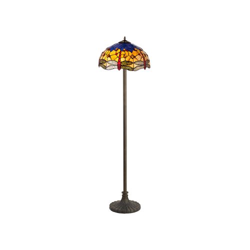 Etna 2 Light Stepped Design Floor Lamp E27 With 40cm Tiffany Shade, Blue/Orange/Crystal/Aged Antique Brass