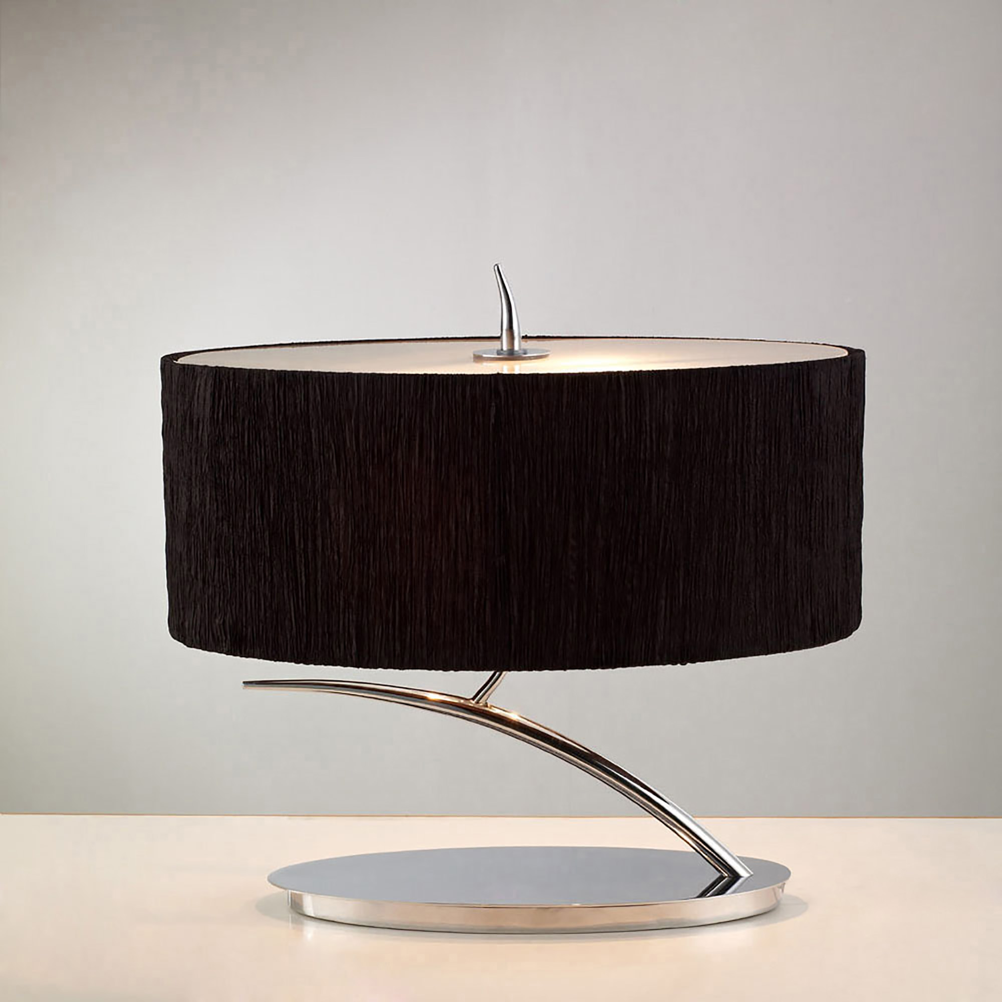 Eve offers an artistic framework with a slight romantic touch and complemented with substantial oval and round shades that are made up of a silky wrinkled material with a clear inner lining. The range is available in both polished chrome and a bespoke anthracite finish combined with either a white or black shade. This range also offers a rarely found triple wall light that is designed to perfection. Eve is a neutral design with universal appeal that has been carefully crafted. A unique table and floor lamp completes this outstanding collection. Some of the items in this range also offer a corrugated shade as an alternative to the standard soft wrinkle fabric.