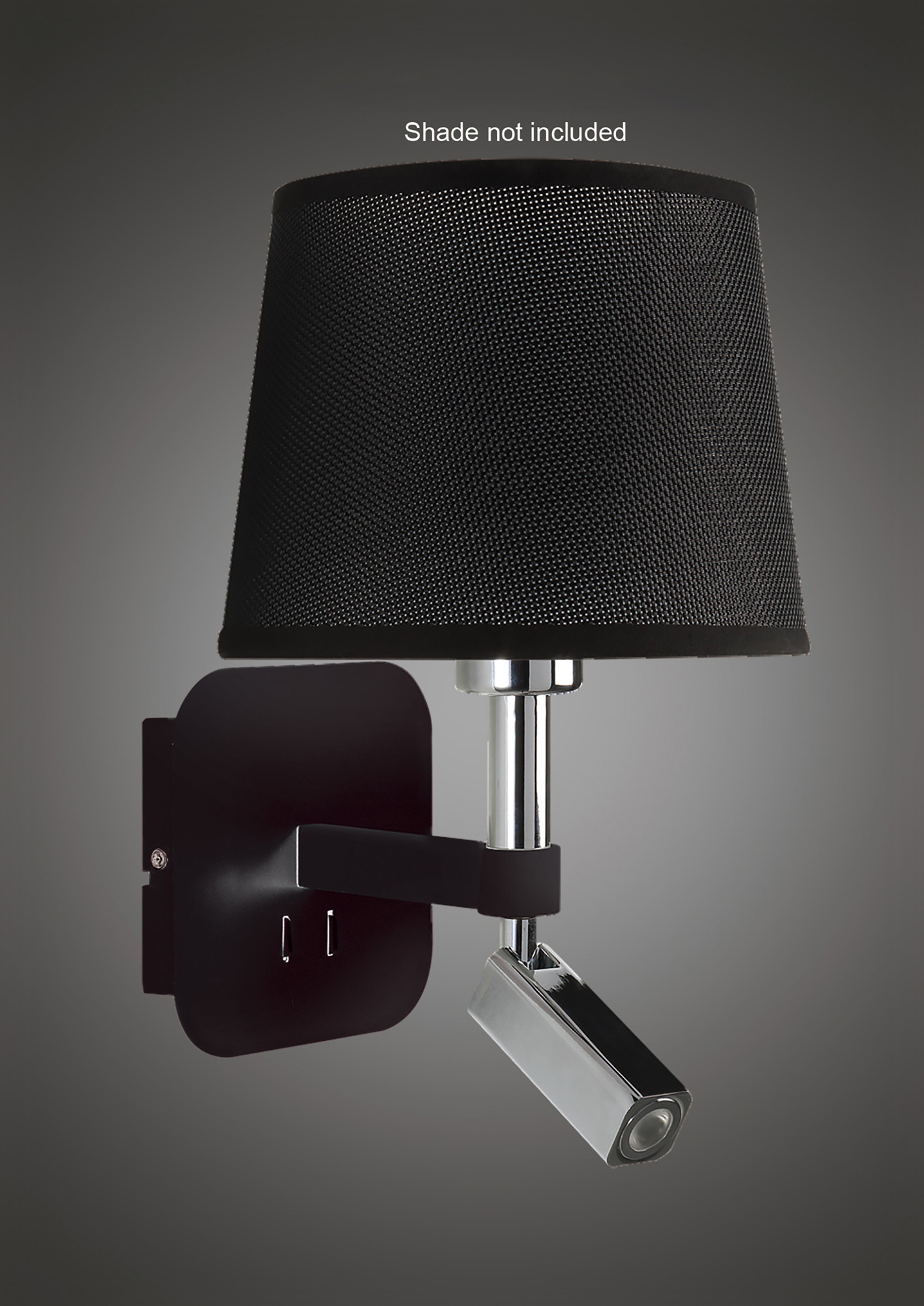 Habana Switched Wall Lamp 1 Light WITHOUT SHADE E27 + Reading Light 3W LED Black/Polished Chrome 4000K, 200lm, 3yrs Warranty