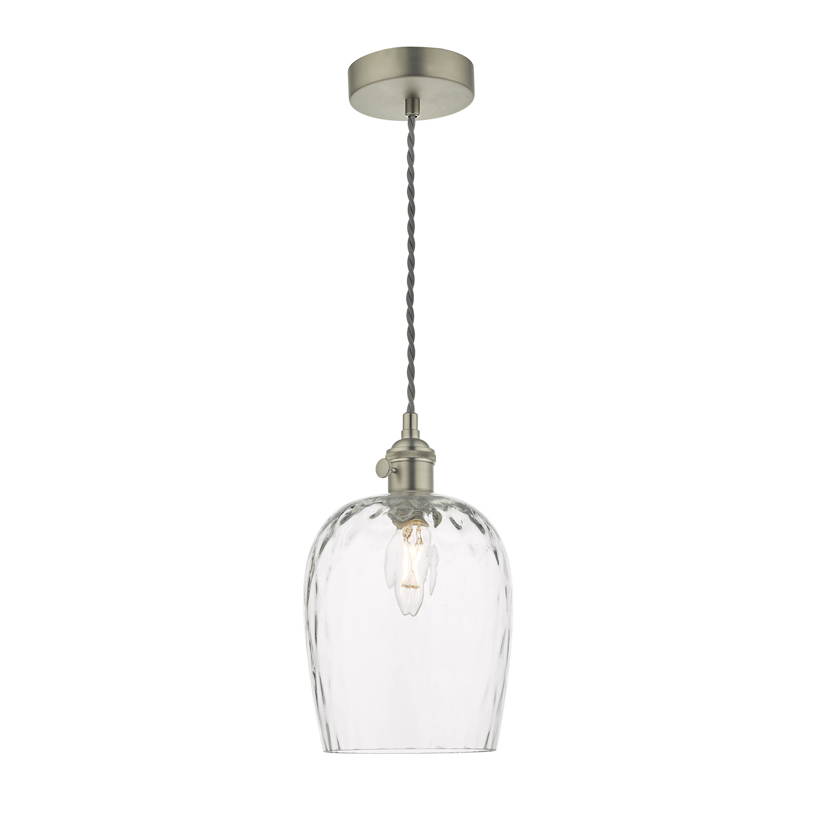 Hadano 1 Light Pendant Antique Chrome C/W Dimpled Glass Shade
