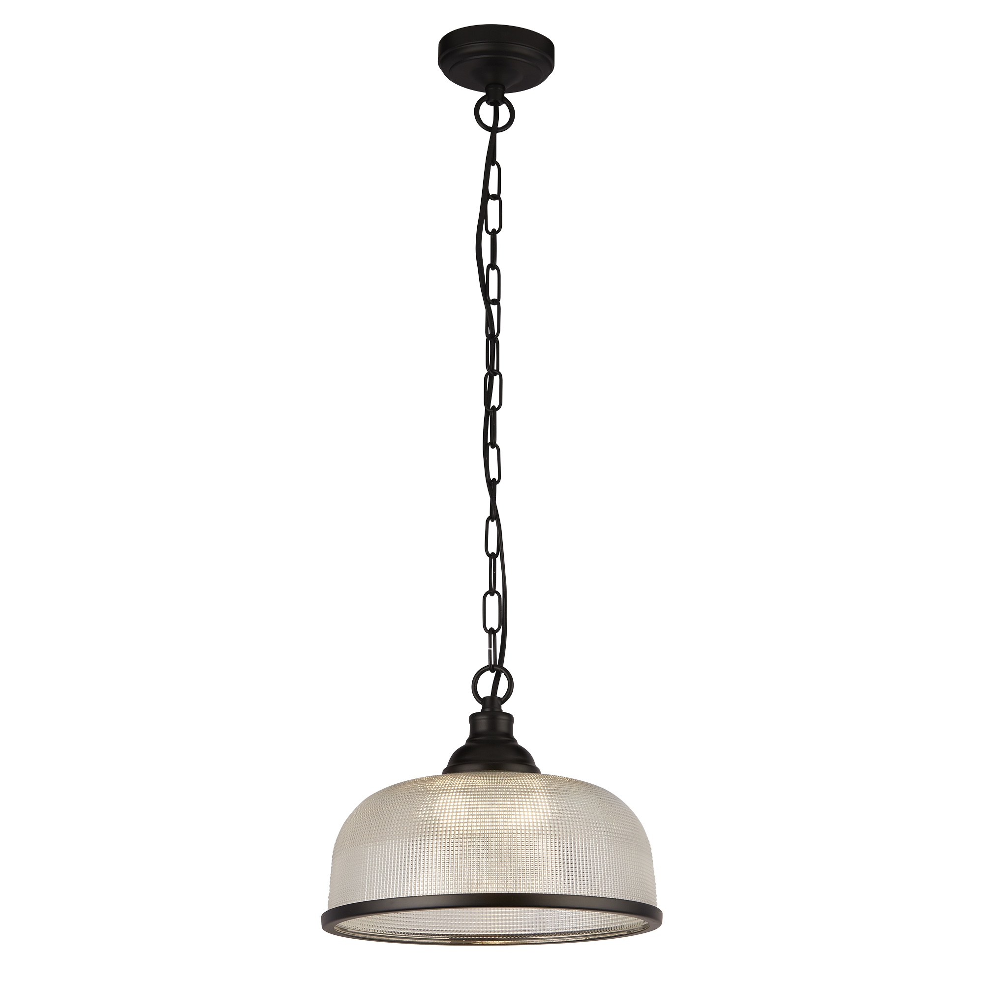 Highworth Pendant – Matt Black Metal & Holophane Style Glass