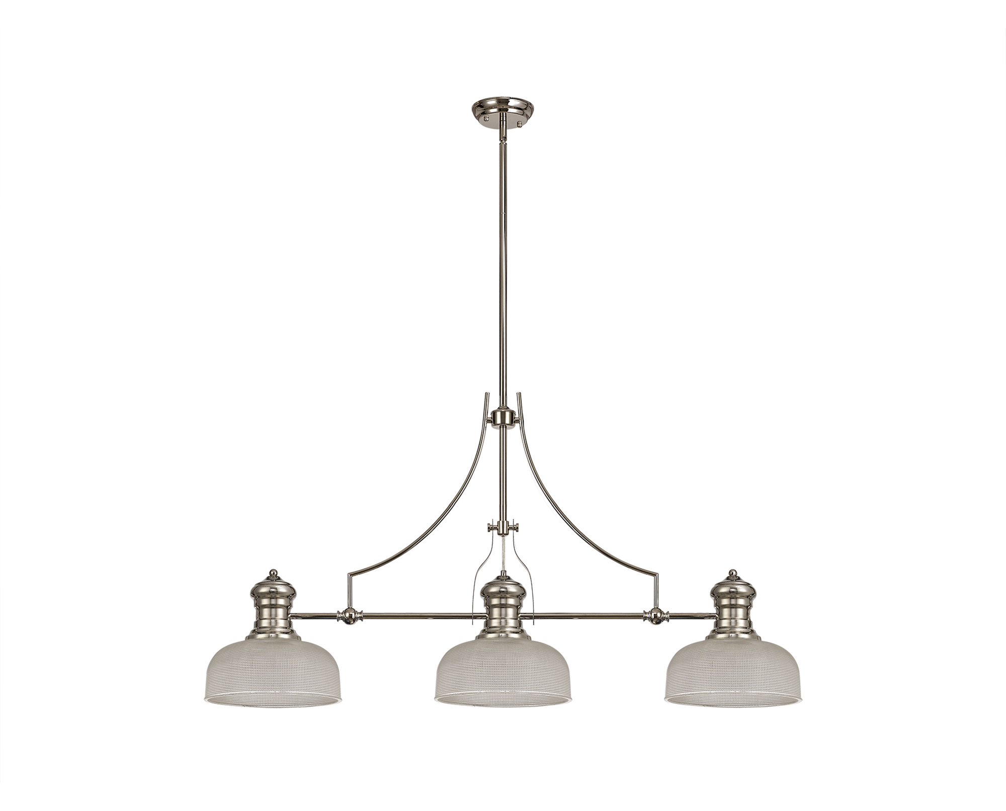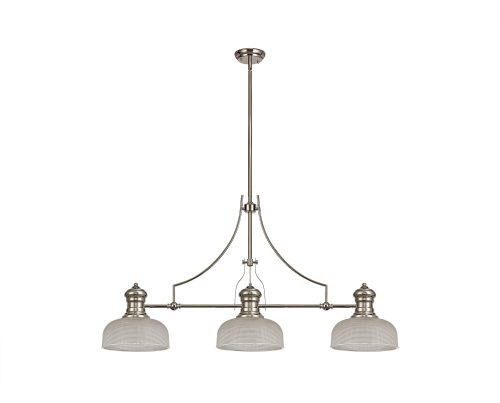 Industry 3 Light Linear Pendant E27 With 26.5cm Prismatic Glass Shade, Polished Nickel, Clear