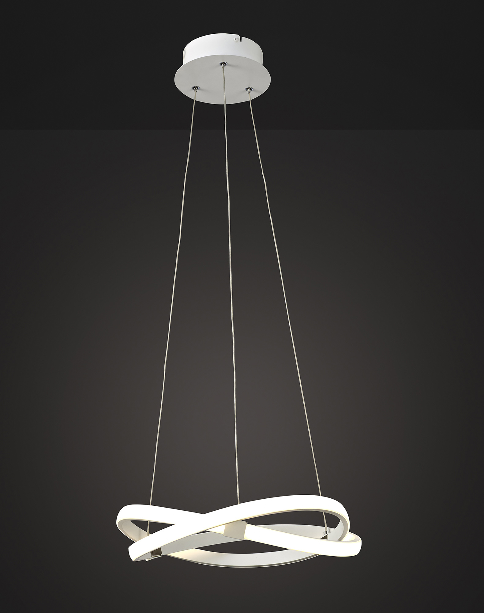 Infinity Blanco provides a neutral modern finish to the Infinity collection. Infinity artistically displays a smooth and uniform line of light without a beginning or an end in this original design by Jose Ignacio Ballester. The similar combination of white framework and frosted polycarbonate diffuser produces a subtle blended image of the curves and turns which mimic the shape and movement of rhythmic ribbons. This integral LED collection produces either a 2800K or 4000K light output to compliment the classic adaptable colour finish. The range consists of pendant and flush ceiling lights as well as an impressive looped table lamp. The flush version boasts a mirror back plate which simply doubles the impact of the design and light emitted. A number of items are also available in dimmable versions.