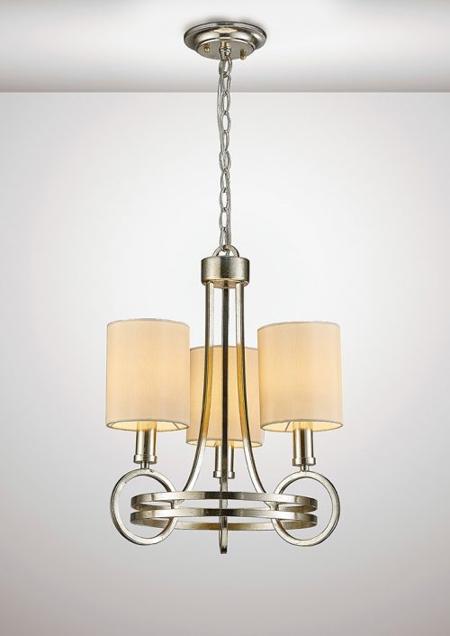 Diyas IL31701 Isabella Pendant With Beige Shade 3 Light E14 Antique Silver/Teak Plated