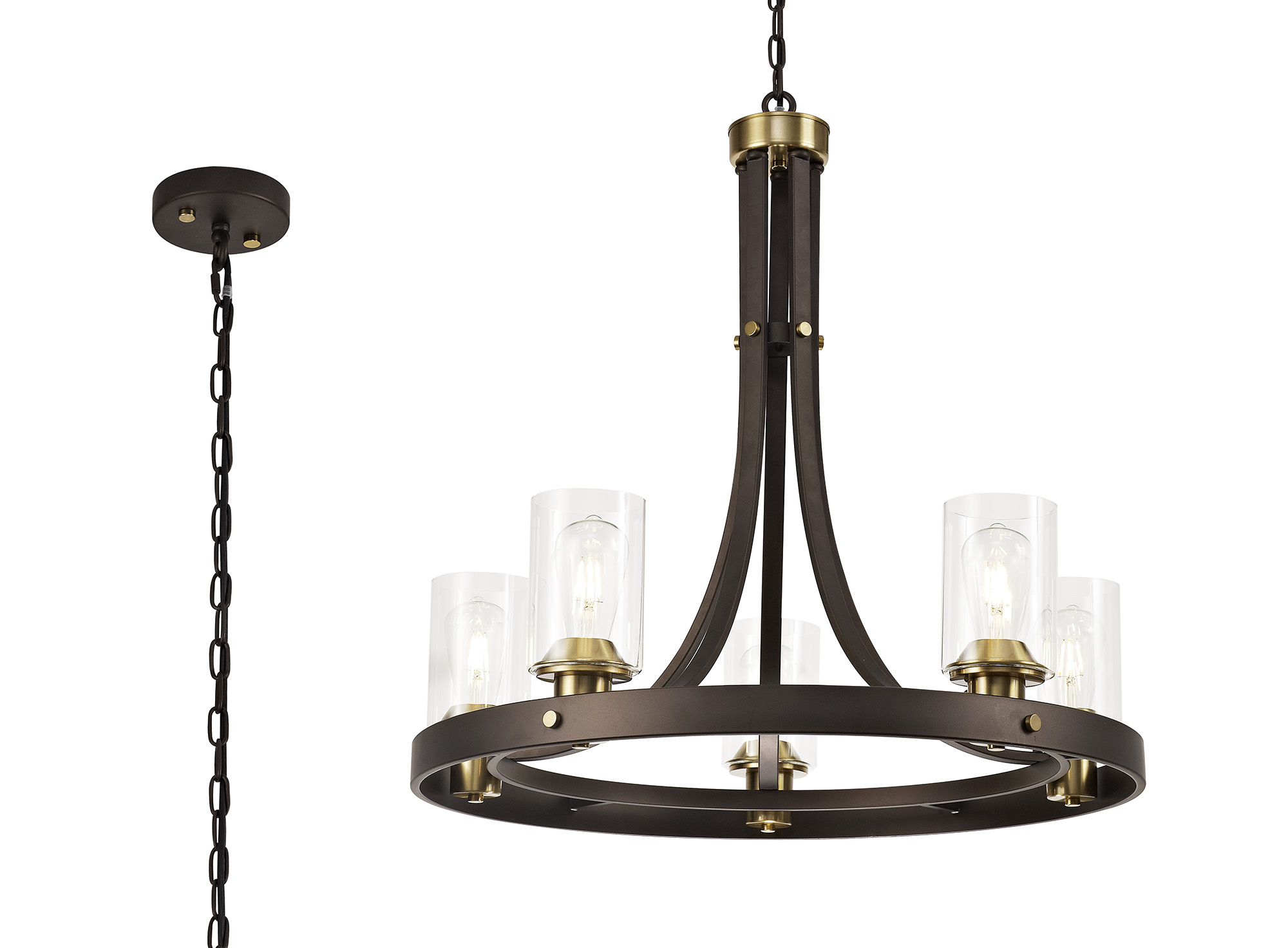 Italy Pendant 5 Light E27, Brown Oxide/Bronze With Clear Glass Shades