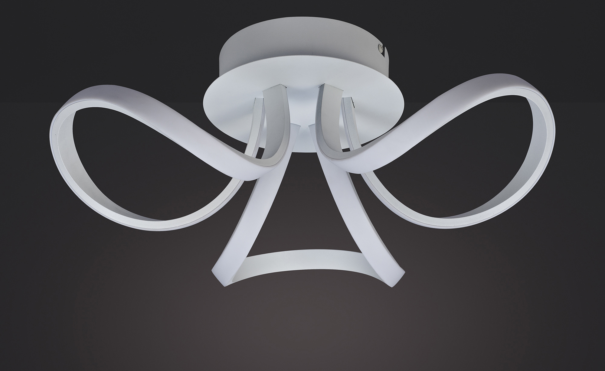 Knot Blanco Ceiling 48cm Round 3 Looped Arms 36W LED 2800K, 2520lm, White/Frosted Acrylic, 3yrs Warranty
