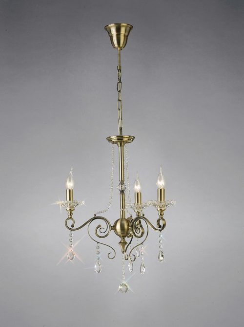 Diyas IL32073 Libra Pendant 3 Light Antique Brass/Crystal