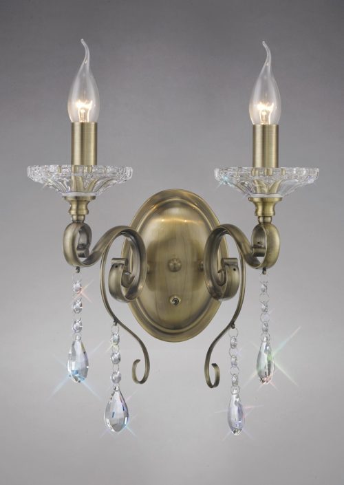 Diyas IL32072 Libra Wall Lamp Switched 2 Light Antique Brass/Crystal