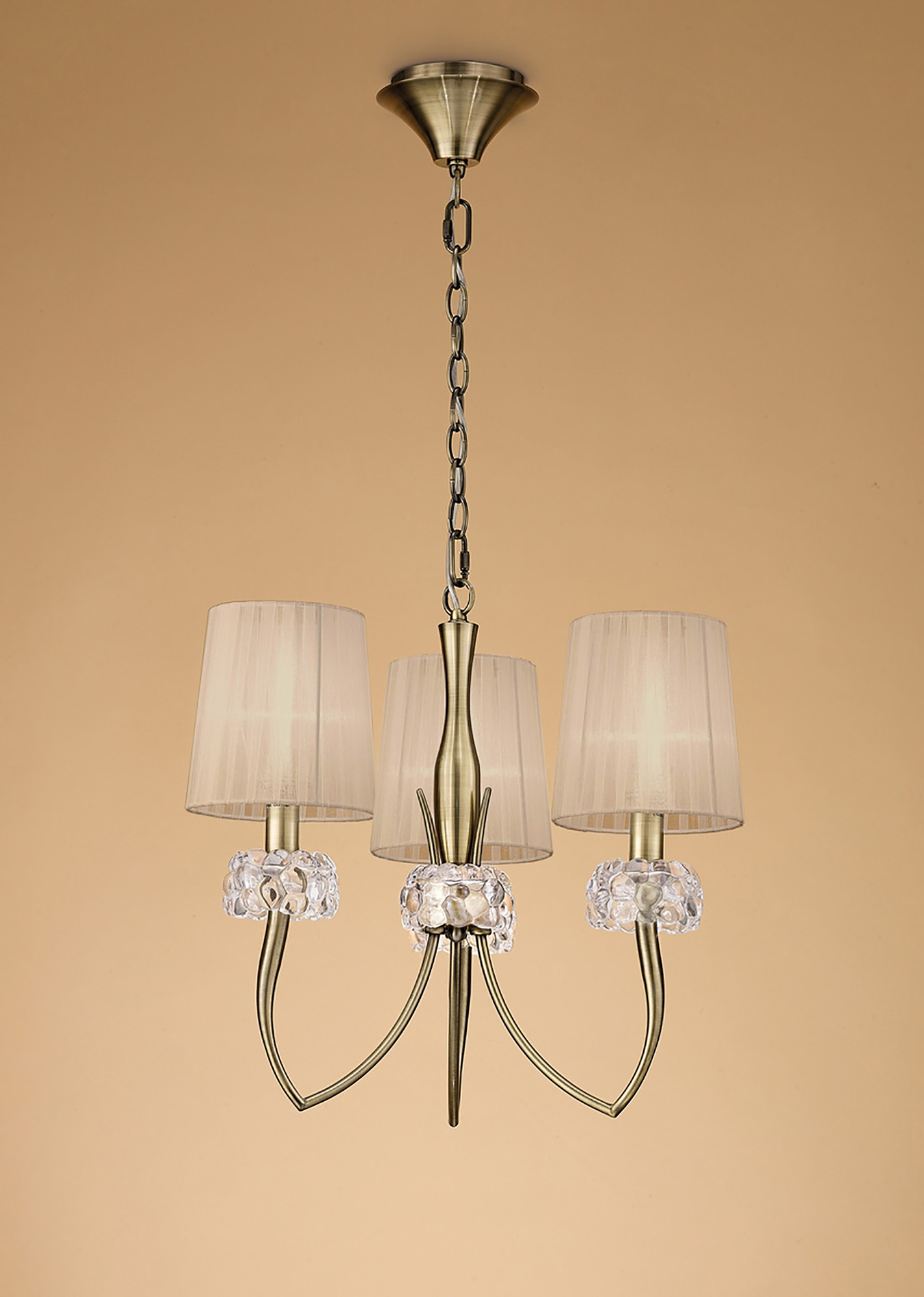 Loewe Pendant 3 Light E14, Antique Brass With Soft Bronze Shades