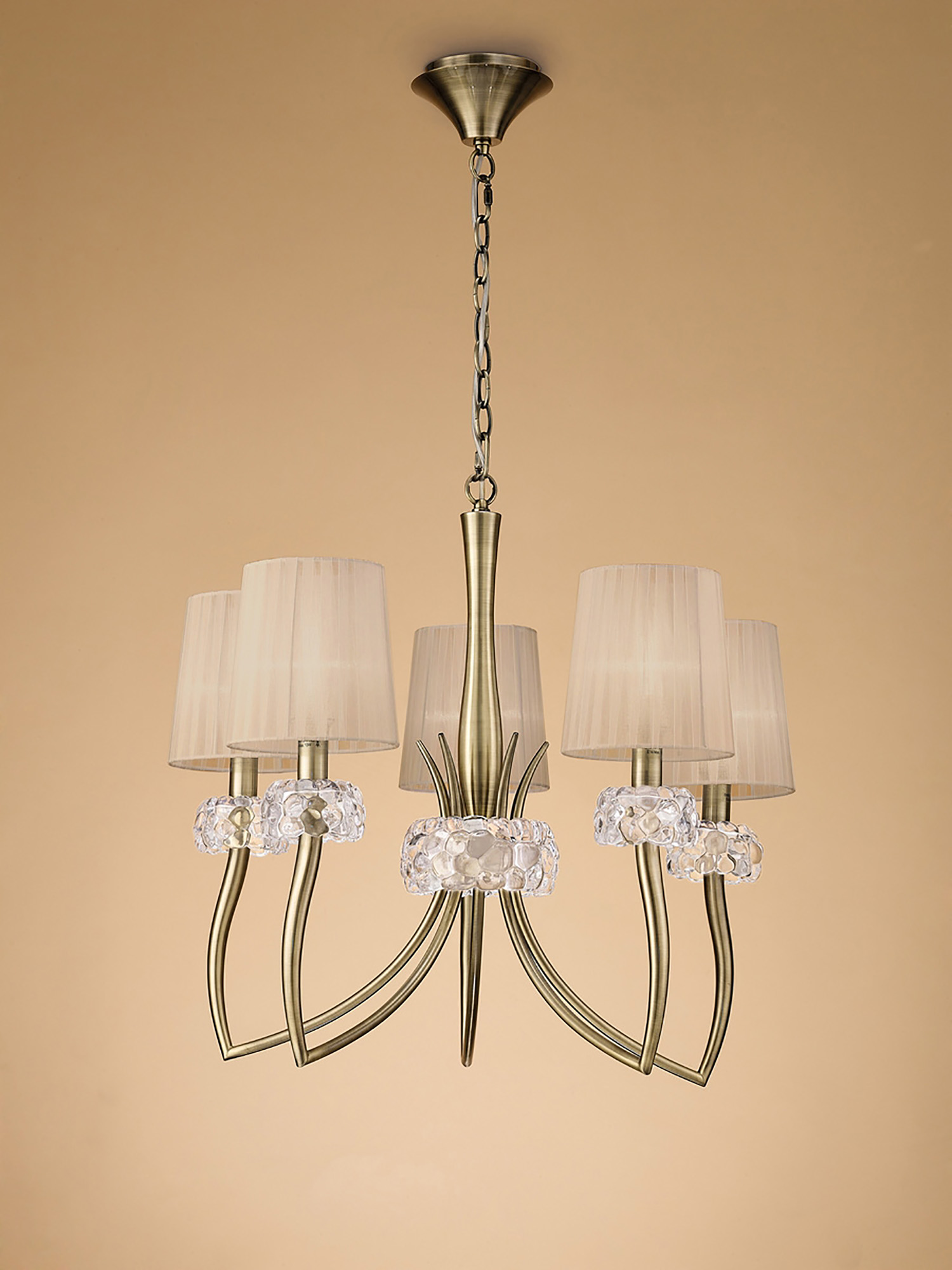 Loewe Pendant 5 Light E14, Antique Brass With Soft Bronze Shades