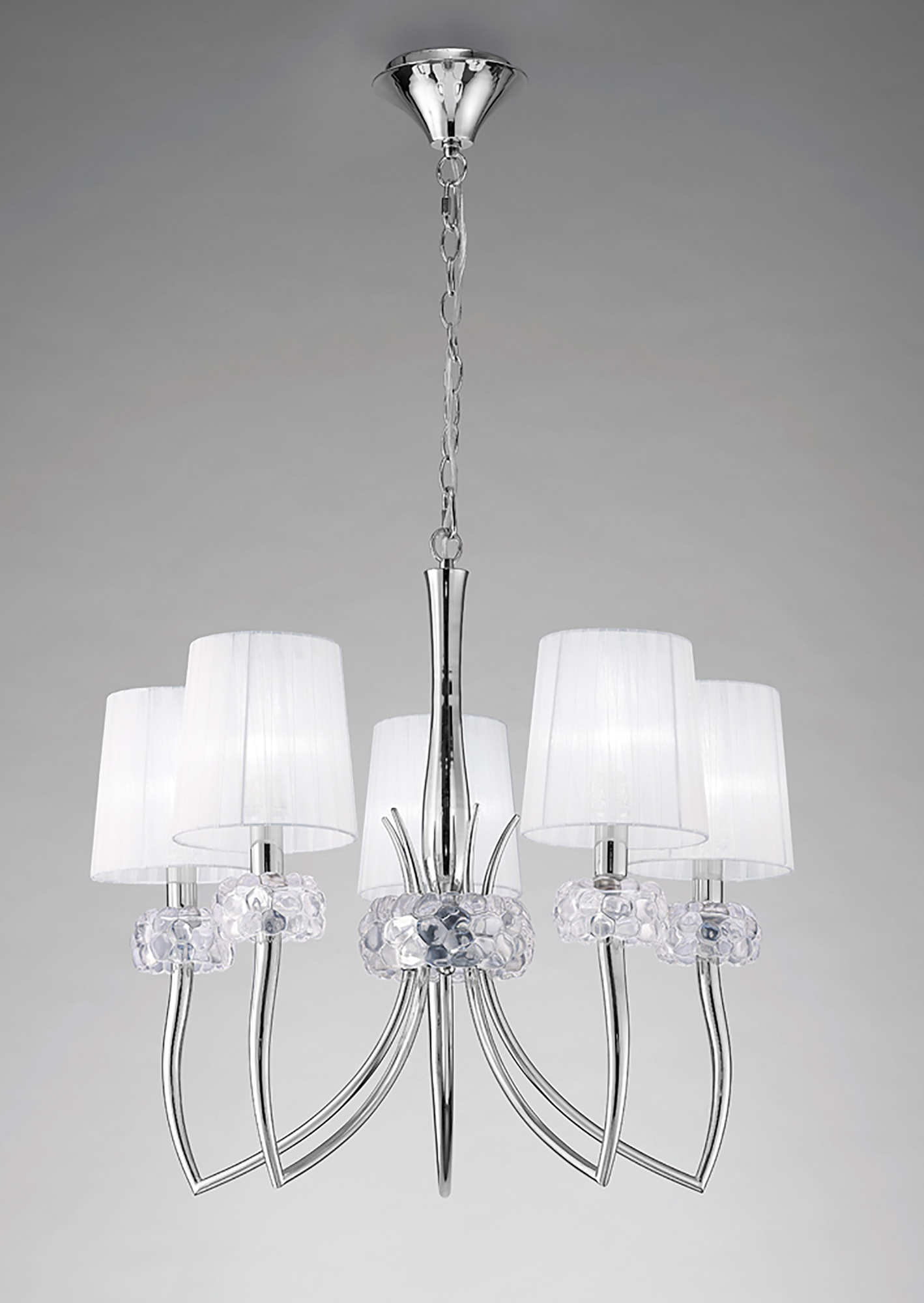 Loewe Pendant 5 Light E14, Polished Chrome With White Shades