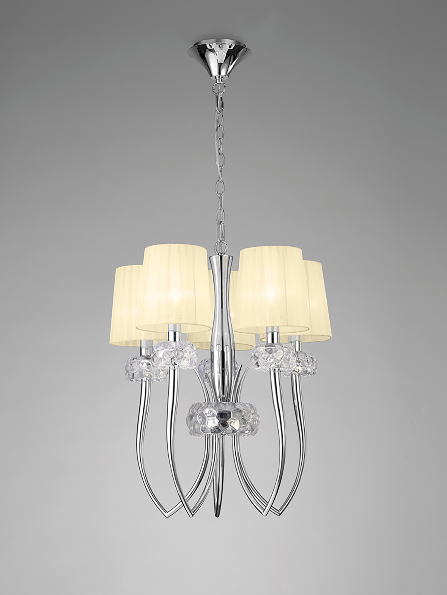 Loewe Slim Pendant 5 Light E14, Polished Chrome With Cream Shades