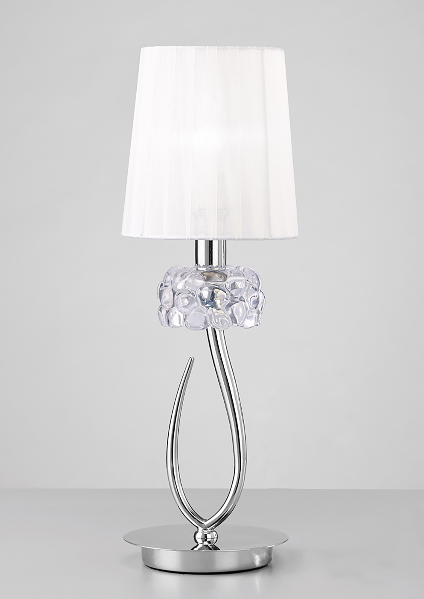 Loewe Table Lamp 1 Light E14 Small, Polished Chrome With White Shade