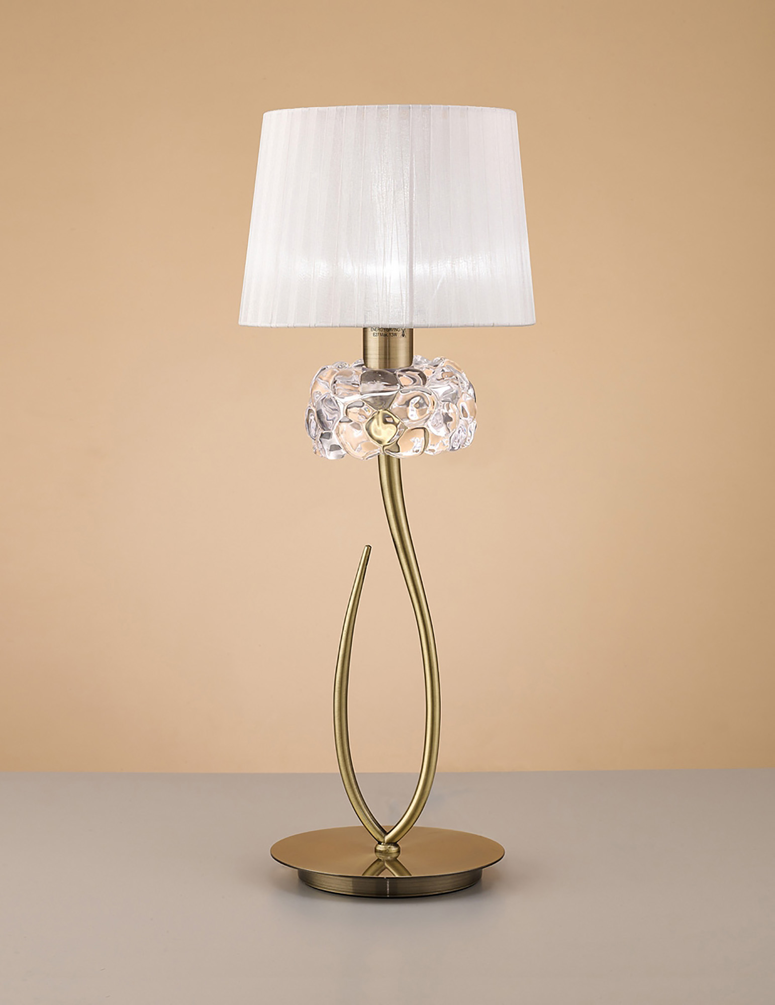 Loewe Table Lamp 1 Light E27 Large, Antique Brass With White Shade (4736)