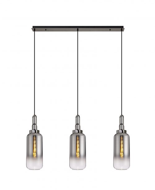 London Linear 3 Light Pendant E27 With 16cm Cylinder Glass, Smoked/Clear Black Chrome/Matt Black