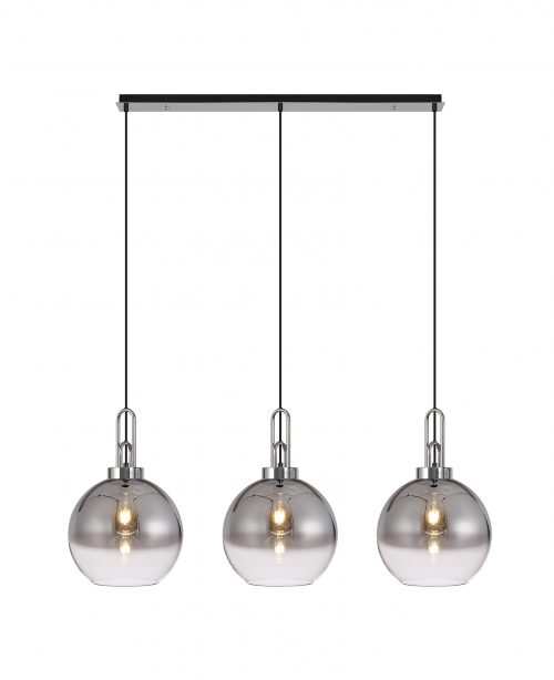 London Linear 3 Light Pendant E27 With 30cm Globe Glass, Smoked/Clear Polished Nickel/Matt Black