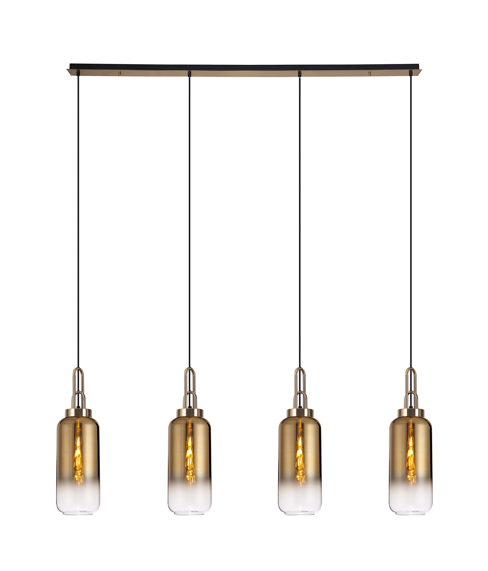 London Linear 4 Light Pendant E27 With 16cm Cylinder Glass, Brass Gold/Clear Brass Gold/Matt Black