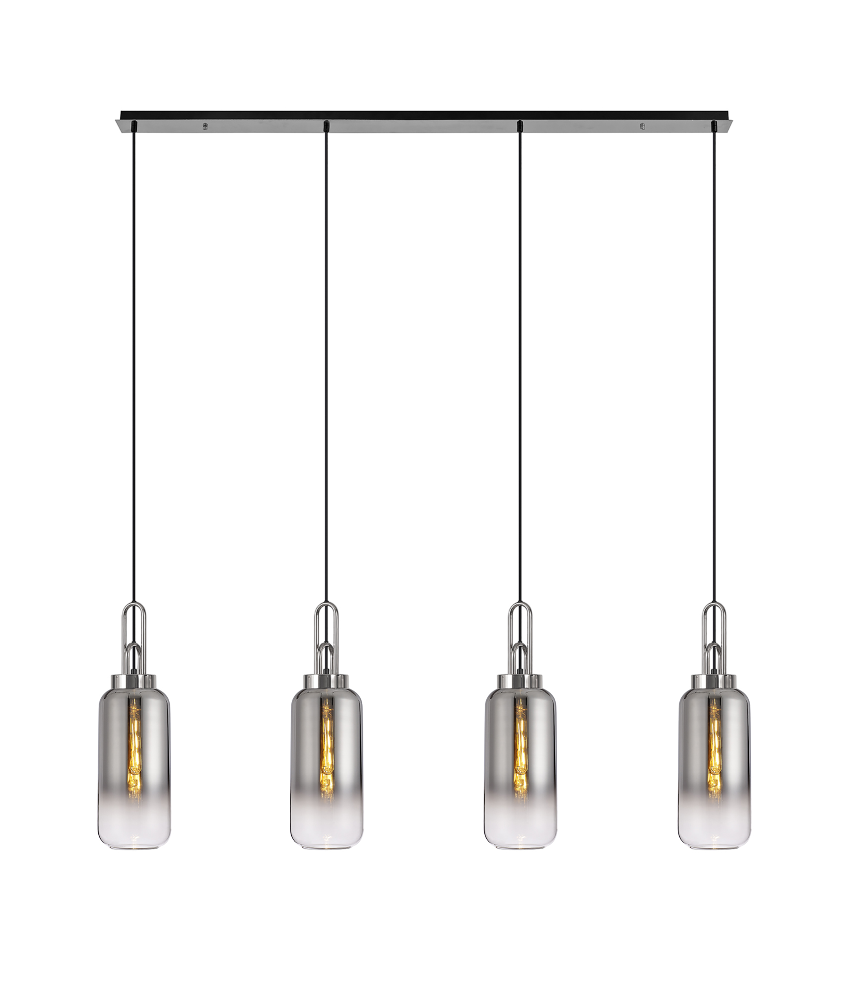 London Linear 4 Light Pendant E27 With 16cm Cylinder Glass, Smoked/Clear Polished Nickel/Matt Black